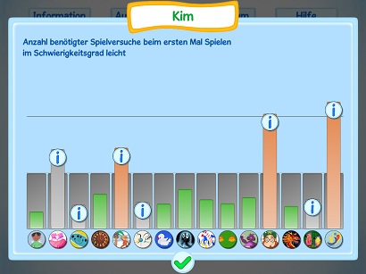 Das Orange der Balken bedeutet keinesfalls, dass Sie sofort zum Arzt müssen. Wenn Sie Ihr Kind unterstützen möchten, können Sie es einfach dieses spezielle Spiel in verschiedenen Schwierigkeitsgraden üben lassen. Manchmal stellt sich dann heraus, dass das Kind zum Beispiel einfach noch nicht wusste, wie eine bestimmte Zahl aussieht, nach der gefragt wurde. Das lässt sich dann mit Motivation und Spaß schnell beheben. Wenn Sie eine bestimmte Fähigkeit mit verschiedenen Spielen üben möchten, können Sie sich auch in der Sammlung ansehen, welche Spiele die gleiche Kompetenz fördern. Denn vor allem soll Lazuli eines: Spaß machen.