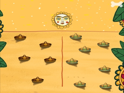 Two quantities of objects are compared, and the difference in number established. For example: "How many balls are needed in order for all seals to have a ball?"